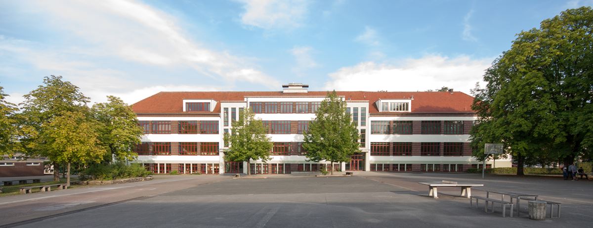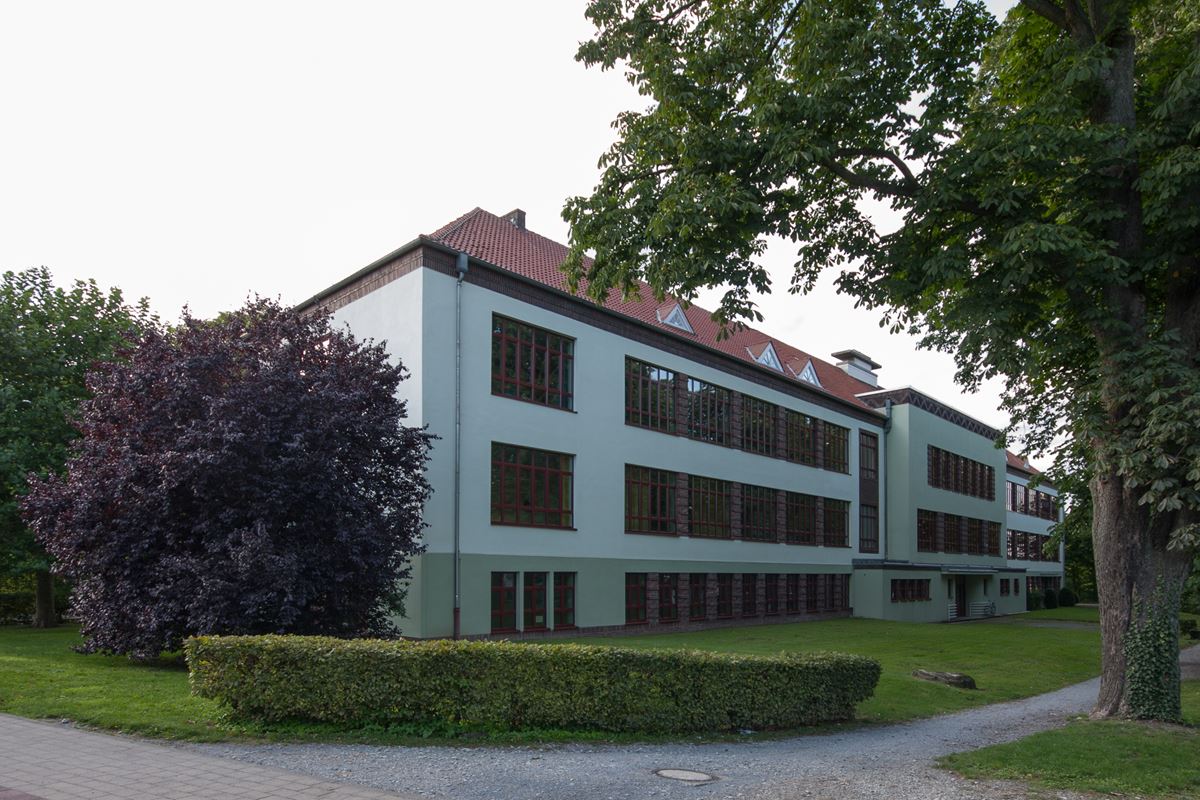 Langgestreckter dreigeschossiger Putzbau mit pfanrıengedecktem Walmdach aus der Zeit um 1930Gut erhaltenen Beispiel eines alten Schulgebäudes in großzügiger Dimension, fast schmucklos, auf seine Funktionalität angelegt.