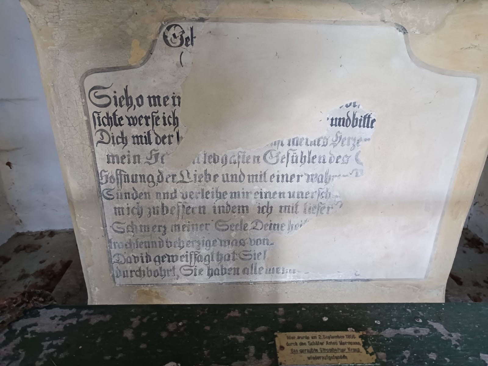An der linken Seite des Altars befindet sich der vorstehende Text.