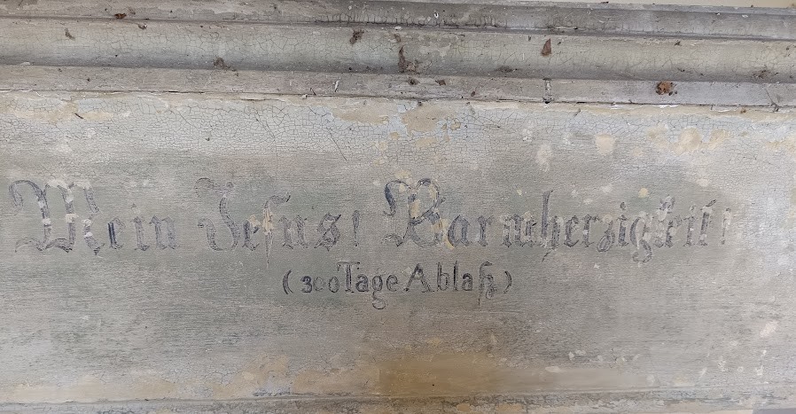 Der Gebetstext auf der Vorderseite des Altars l ist nur noch teilweise vorhanden. Es handelt sich um das folgende Ablassgebet: