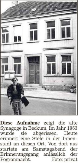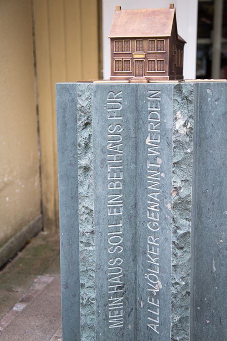 Vom Heimat- & Geschichtsverein Beckum initiiert ist vor der Front des Wohn- und Geschäftshauses im November 2017 ein vom Künstler Paul Tönnißen erschaffenes bronzenes Modell der Beckumer Synagoge aufgestellt worden. Das Synagogen-Gebäude ist in Bronzeguss im Maßstab ca. 1:30 nach dem Stand von 1938 dargestellt. Der Sockel aus Anröchter Naturstein soll durch die nur teils aus dem Steinblock hervortretenden, „unvollständigen“ Spitzen des Davidssterns und den dagegen vollständigen Kern-Stern in der Aufsicht kein ästhetisch-heiles, unbeschädigtes Gesamtbild vermitteln und zum kritischen Nachdenken anregen.
