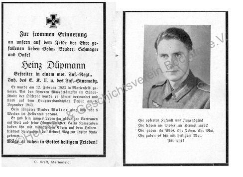 | Düpmann, Heinz | Marienfeld | 12.02.1923 | Pojut? | 06.12.1943 |