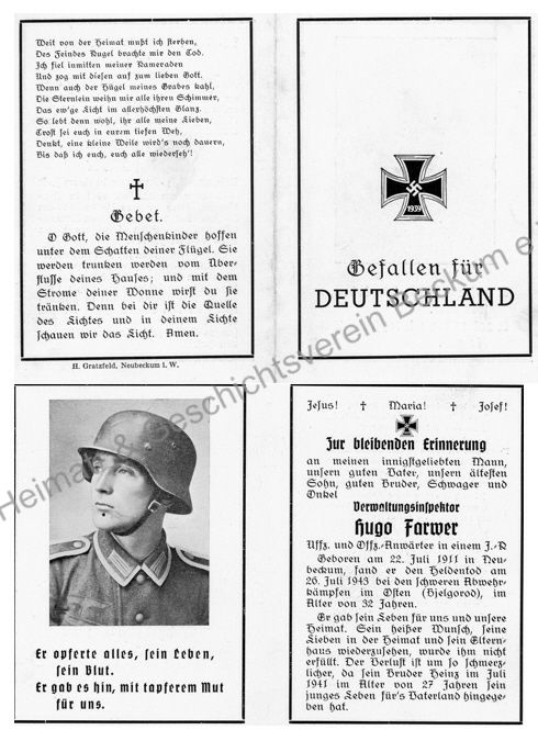 | Farwer, Hugo | Neubeckum | 22.07.1911 | Russland - Bjelgorod | 26.07.1943 |