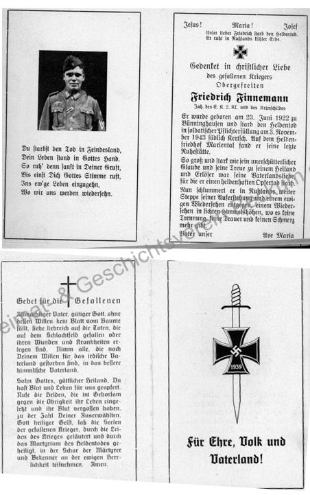 | Finnemann, Friedrich | Bünninghausen | 23.06.1922 | Russland - Kertsch | 03.11.1943 |