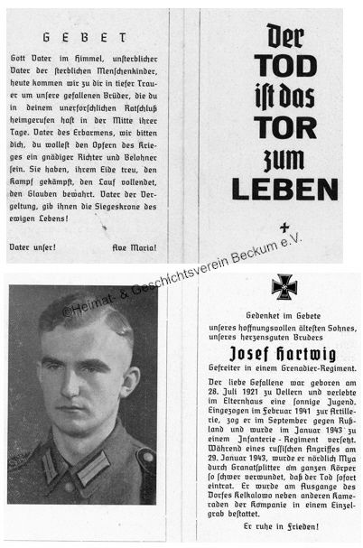 | Hartwig, Josef | Vellern | 28.07.1921 | Russland -Mya | 29.01.1943 |