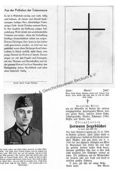 | Hegenbüscher, Hermann | Beckum | 10.08.1908 | Österreich - Mannsdorf | 08.04.1945 |