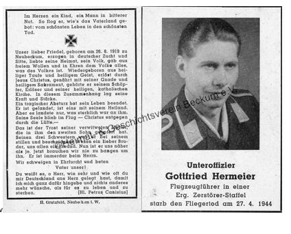 | Hermeier, Gottfried | Neubeckum | 26.08.1919 | Fliegertod | 27.04.1944 |