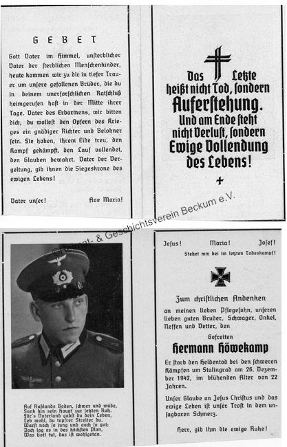 | Höwekamp, Hermann | 22 jahre | XX.XX.1920 | Russland -Stalingrad | 26.12.1942 |