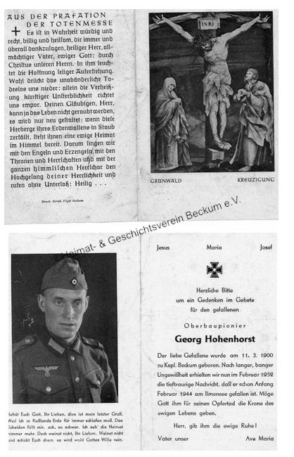 | Hohenhorst, Georg | Beckum | 11.03.1900 | Russland - Ilmensee | XX.02.1944 |