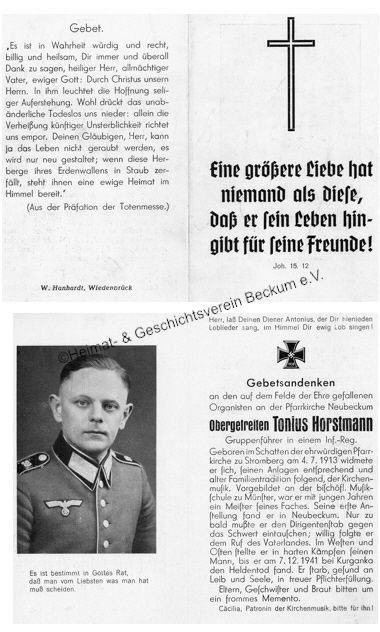| Horsmann, Konrad | Beckum | 14.01.1910 | Russland - Utrikowo | 22.03.1943 |