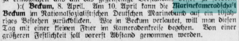 Über die Marine-Kameradschaft ist leider nichts mehr bekannt. Über jede Infomation zu dem Denkmal und der Marine-Kameradschaft würden wir uns freuen.