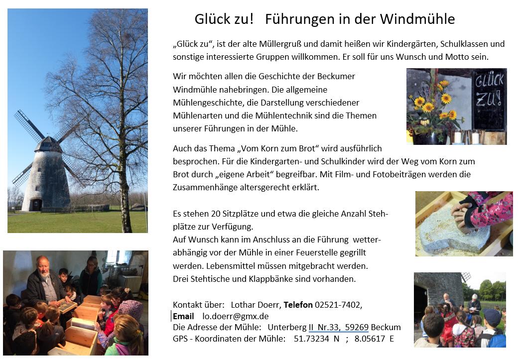 Für Interessierte ist die Höxberg-Mühle (Lippborger Strasse, Unterberg II 33) in den